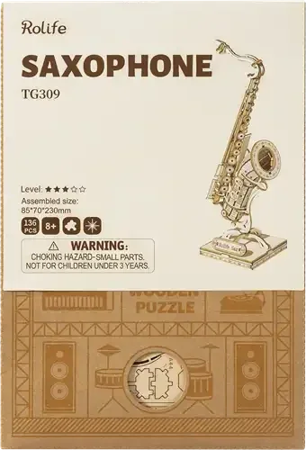 De TG309 Robotime Saxophone is een erg fraaie houten bouwkit van Rolife. Deze sax is perfect voor de muziekliefhebber om te bouwen, zowel voor volwassenen of voor kinderen vanaf 8 jaar. Dit gedetailleerde model bevat een kopstuk, buik en beker, maar ook fijnere elementen als het rietje, de kleppen en toetsen zijn nauwkeurig nagemaakt, waardoor het een prachtig en authentiek uiterlijk krijgt.