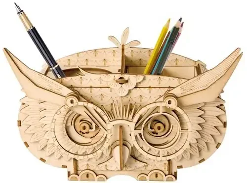 De TG405 Robotime Owl Storage Box is een fantastisch houten bouwpakket van Rolife, geschikt voor zowel volwassenen als kinderen vanaf 8 jaar. Deze stoere uil heeft een indringende blik en kenmerkende oehoe-wenkbrauwen, waardoor hij een echte eyecatcher is. Het ontwerp is niet alleen mooi, maar ook praktisch, met een verrassend element: de uil fungeert als pennenbak voor pennen, potloden en zelfs scharen.