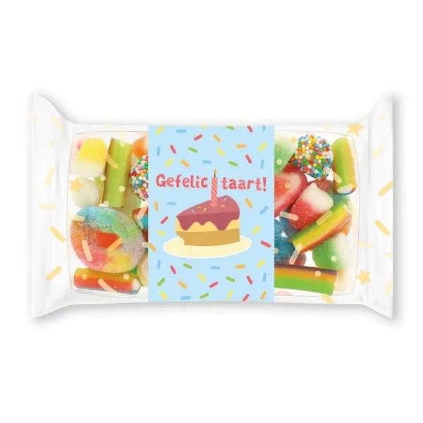 Snoepreep met lekkere mix met de tekst Gefelicitaart